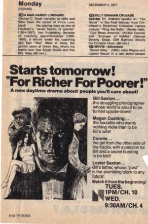 Tuesday, December 6, 1977: Debut of For Richer, For Poorer (2), the revamped version of Lovers and Friends.